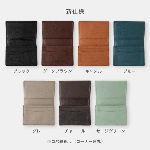 アリゾナ・シリーズのカブセ蓋つきの名刺入れです。三方が広がる「通しマチ」で名刺をたっぷりと入れられます。一般的な厚みの名刺なら約50枚収納できます。多忙なビジネスパーソン必携の名刺入れです。